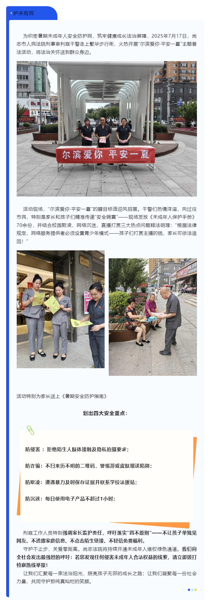 尔滨爱你•护未有我|尚志法院倾力撑起未成年人法治晴空,刑事审判庭“平安一夏”守护行动火热进行