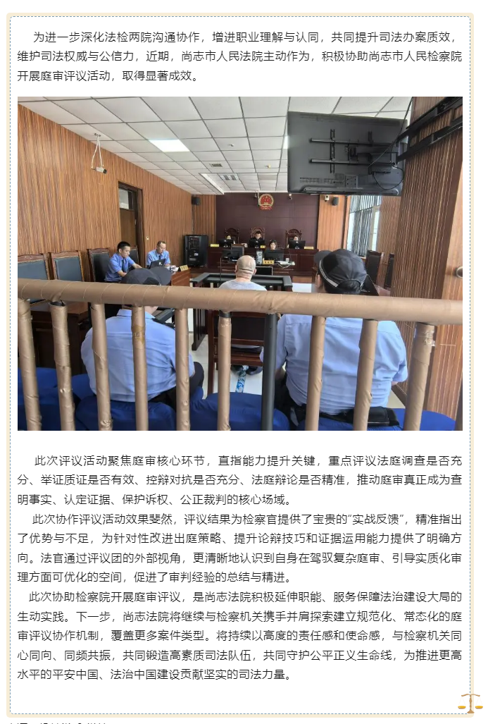 旁听庭审“零距离”,共筑法治“同心圆”--尚志市人民法院积极协助检察院开展庭审评议活动
