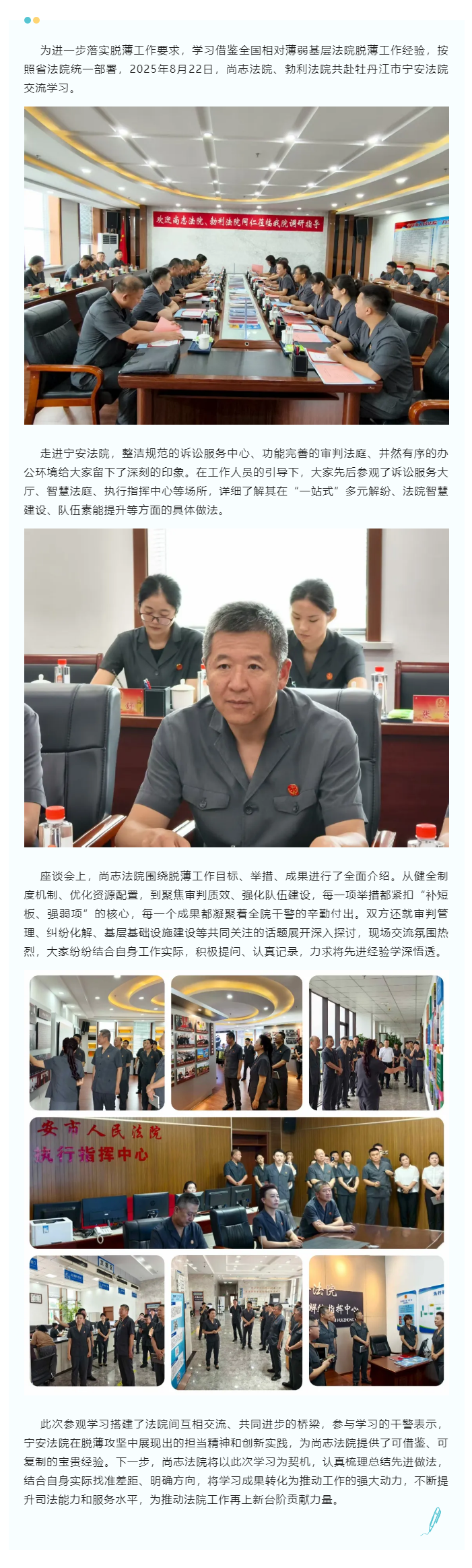 对标先进汲经验 蓄力奋进促提升——尚志法院赴宁安法院开展学习交流活动