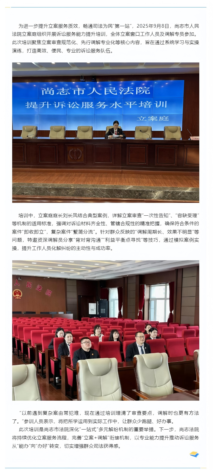 【尚法讲坛第11期】尚志法院立案庭开展诉讼服务能力提升培训