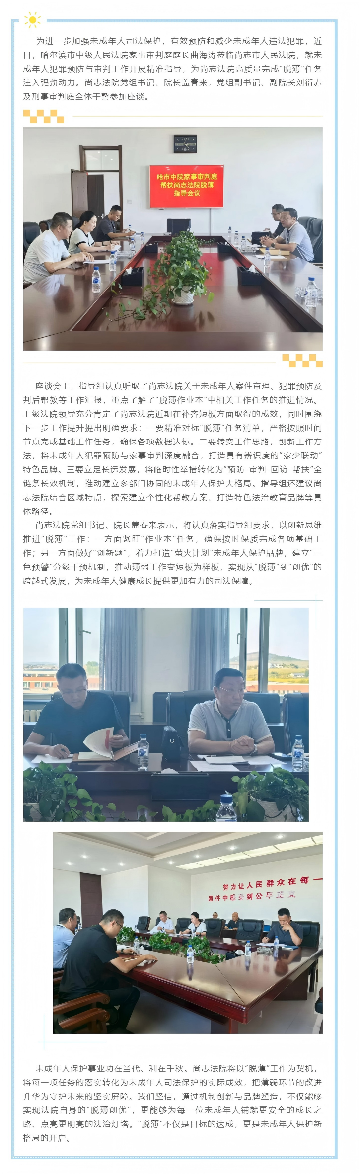 精准指导助脱薄 创新思路育品牌—— 哈尔滨市中级人民法院家事审判庭深入尚志法院指导未成年人犯罪预防工作