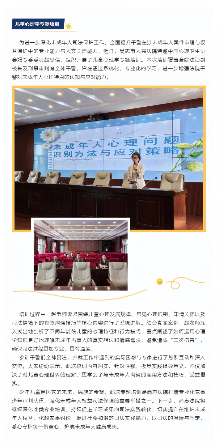 【尚法讲坛第13期】 守护童心 法润未来—— 尚志市人民法院开展儿童心理学专题培训