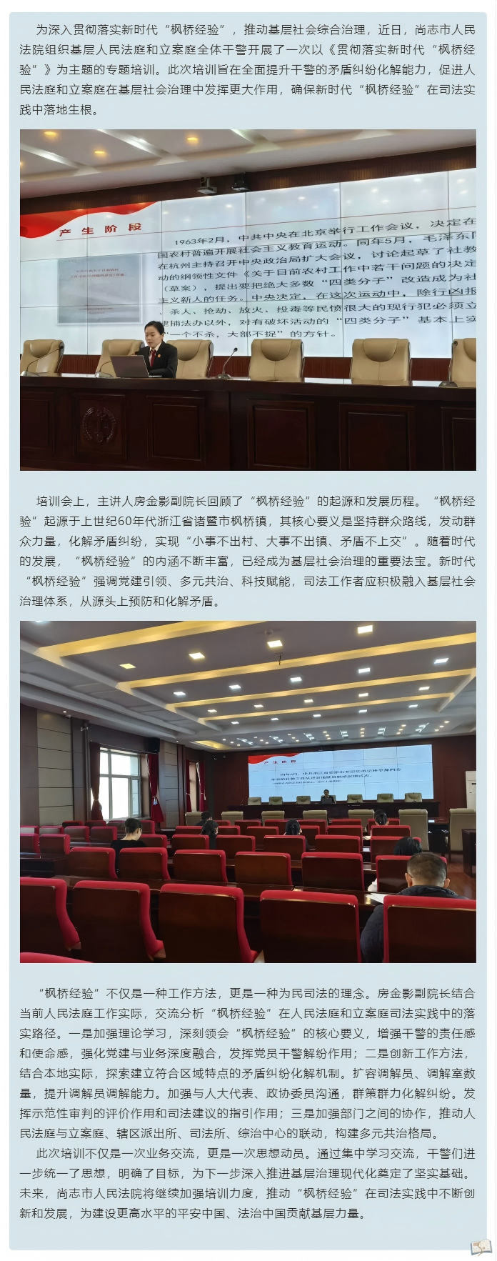 【尚法讲坛第15期】守正创新枫桥路 司法为民践初心——尚志法院开展贯彻落实新时代“枫桥经验”专题培训班