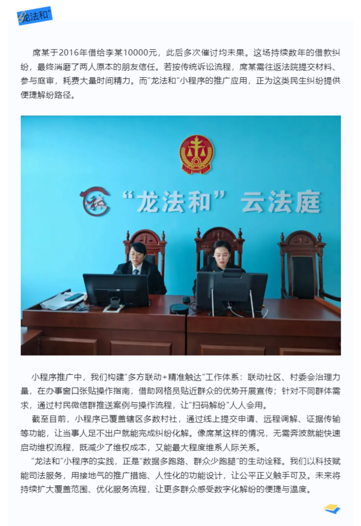 朋友借钱不还?“龙法和”小程序出手,纠纷秒解!