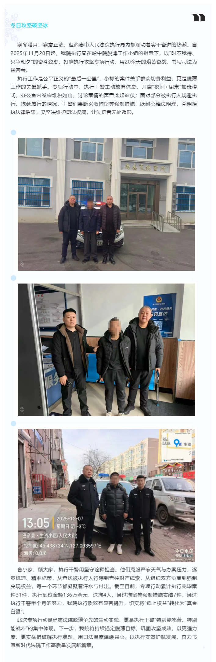 冬日攻坚破坚冰 脱薄争先显担当——尚志法院执行专项行动交出亮眼答卷