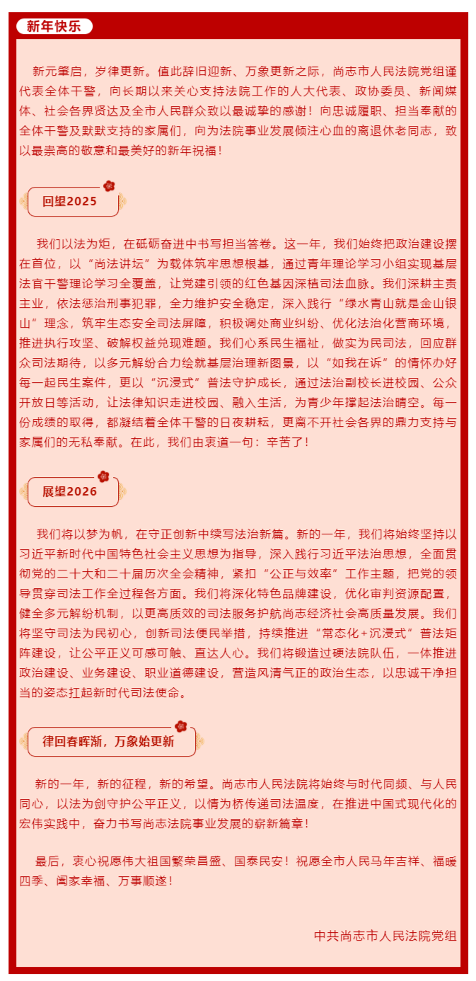 以法为炬践初心 守正创新启新程--尚志市人民法院2026年新年贺词