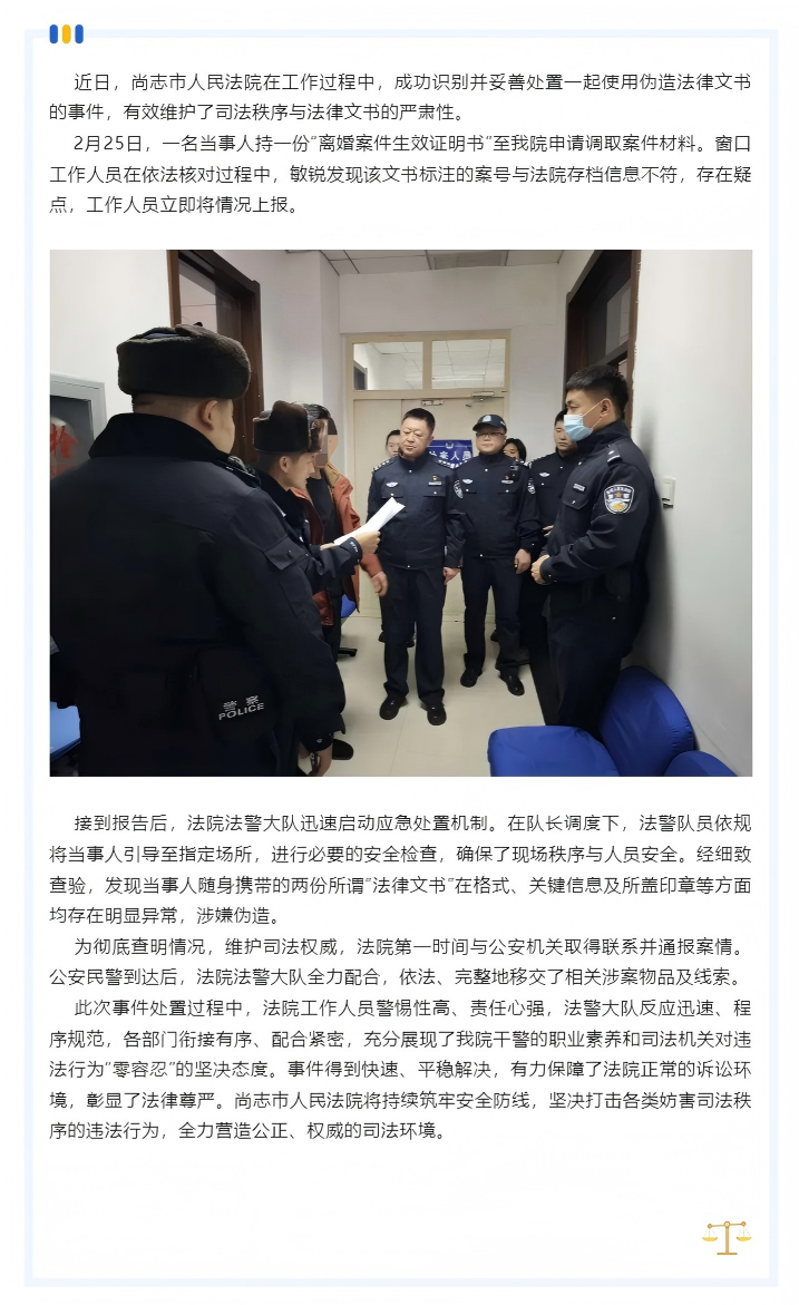 伪造法院文书能否蒙混过关?尚志法警火眼金睛依法妥善处理